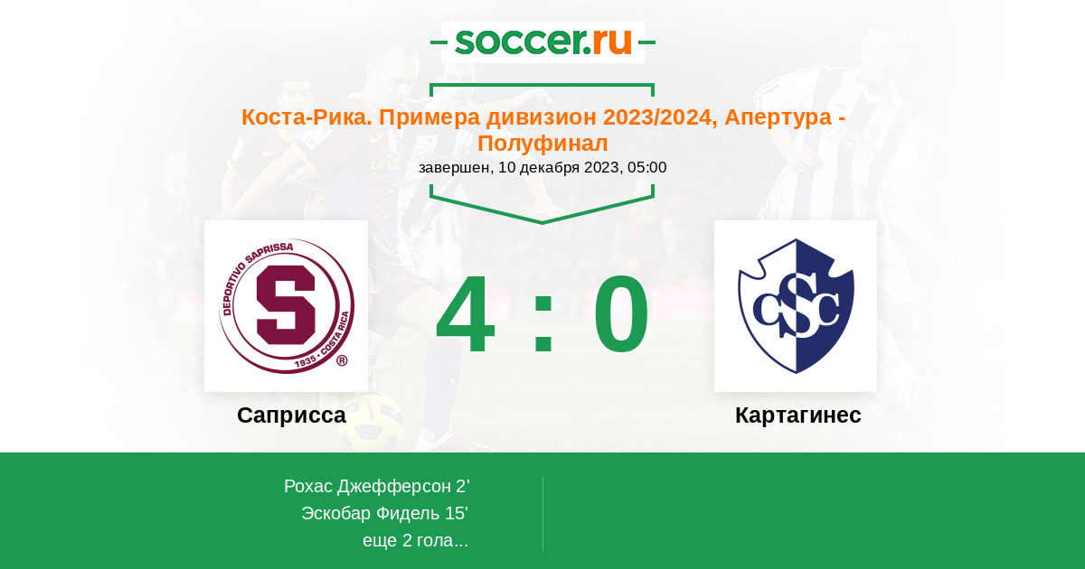 Протокол матча Саприсса против Картахинес