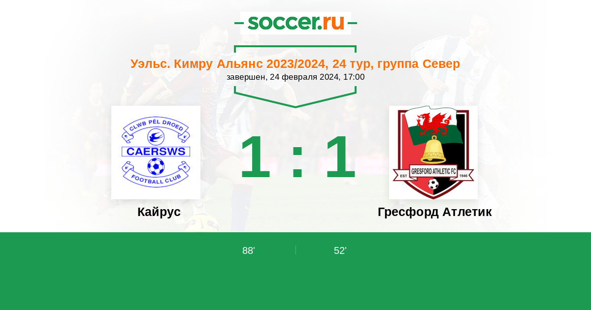 Протокол матча Кайрус против Гресфорд Атлетик