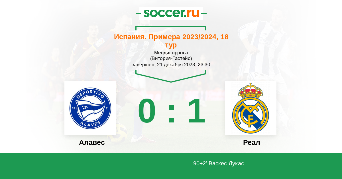 Протокол матча Алавес против Реал