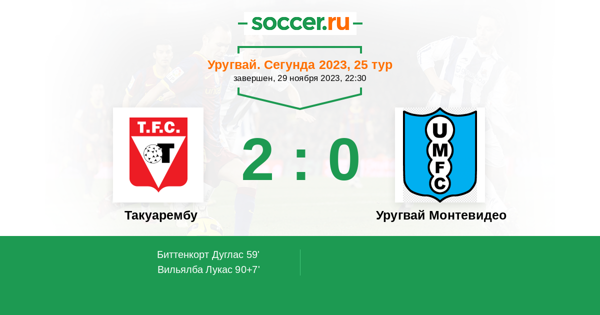Протокол матча Такуарембу против Уругвай Монтевидео