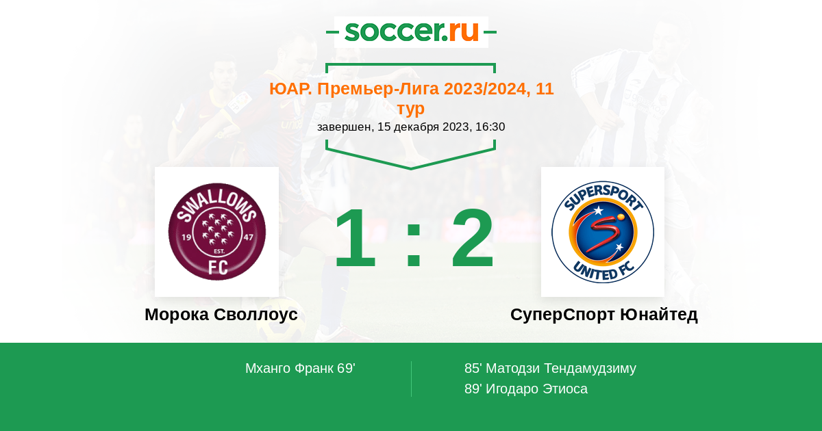 Протокол матча Морока Своллоус против СуперСпорт Юнайтед