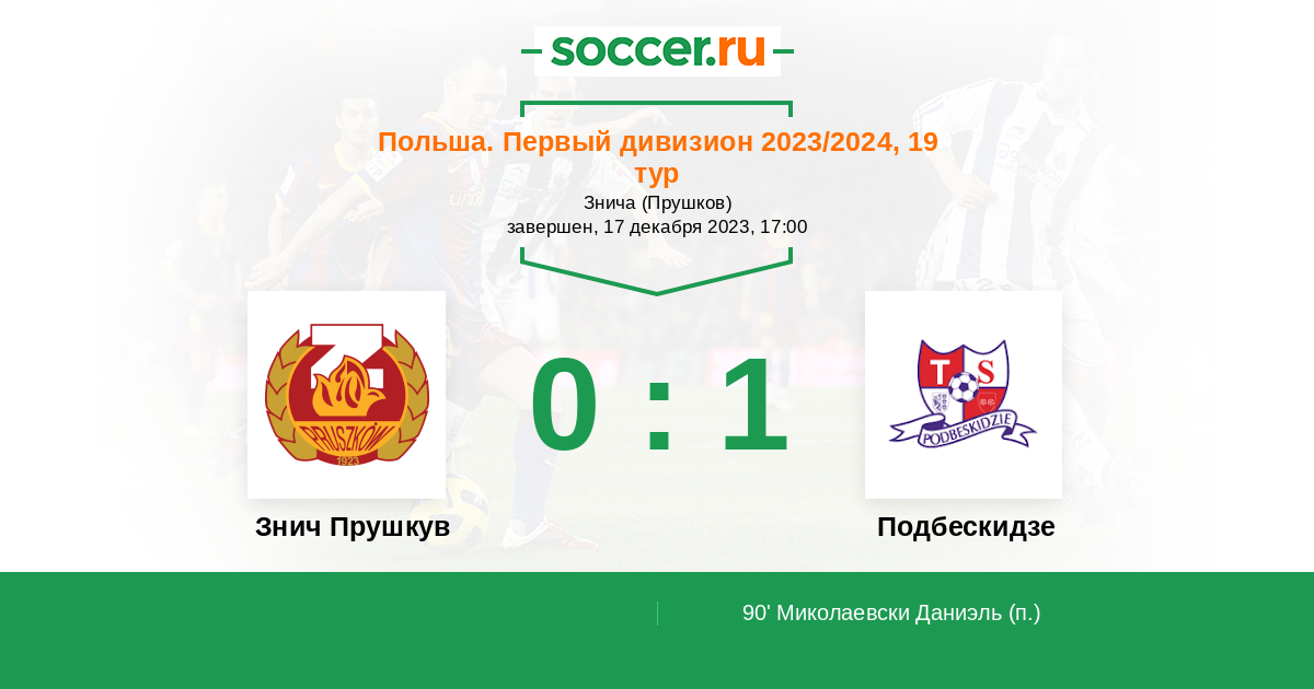 Протокол матча Знич Прушкув против Подбескидзе