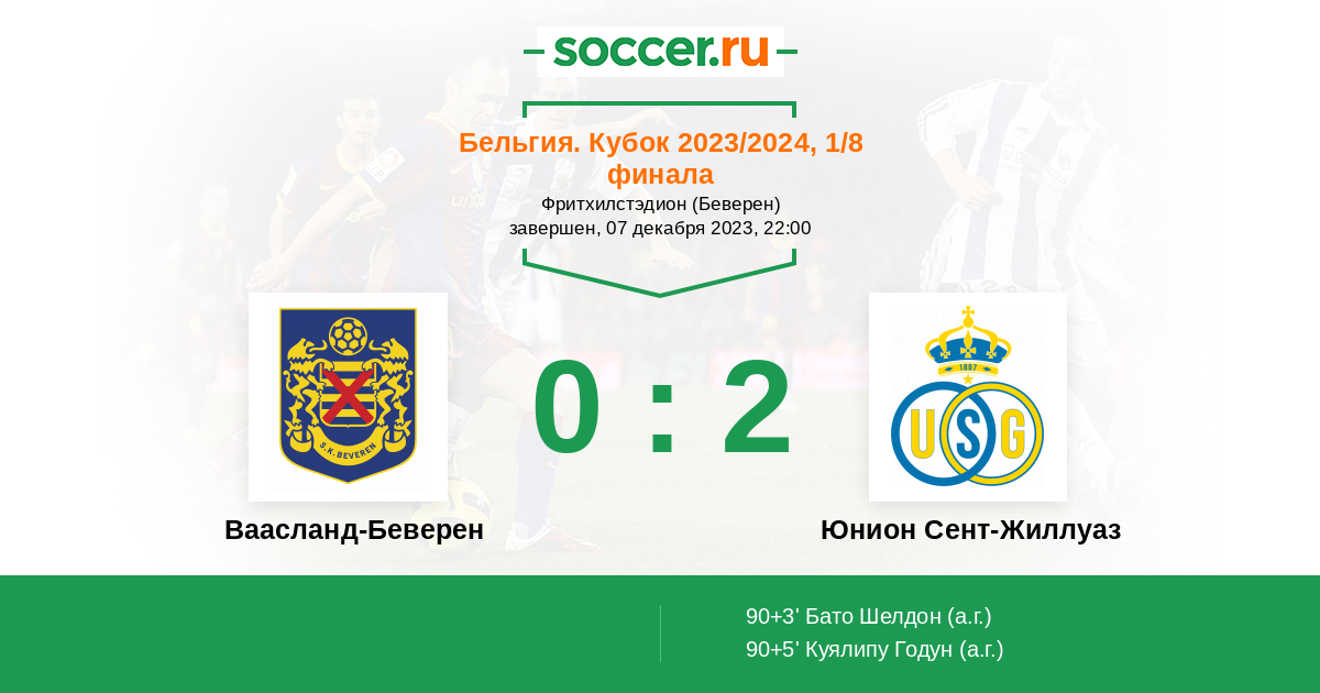 Протокол матча Ваасланд-Беверен против Юнион Сент-Жиллуаз