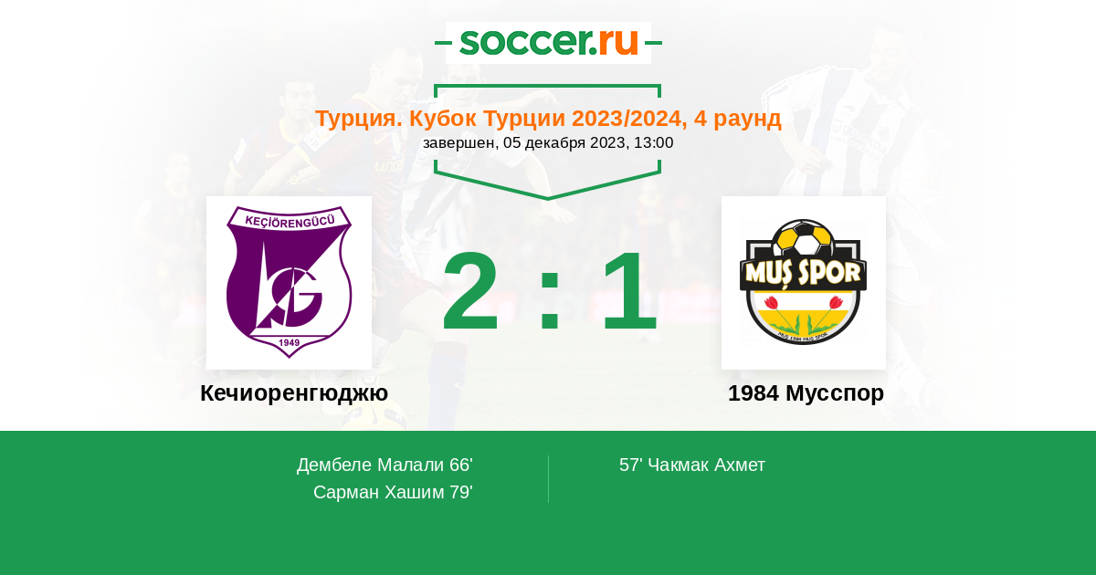 Протокол матча Кечиоренгюджю против 1984 Мусспор