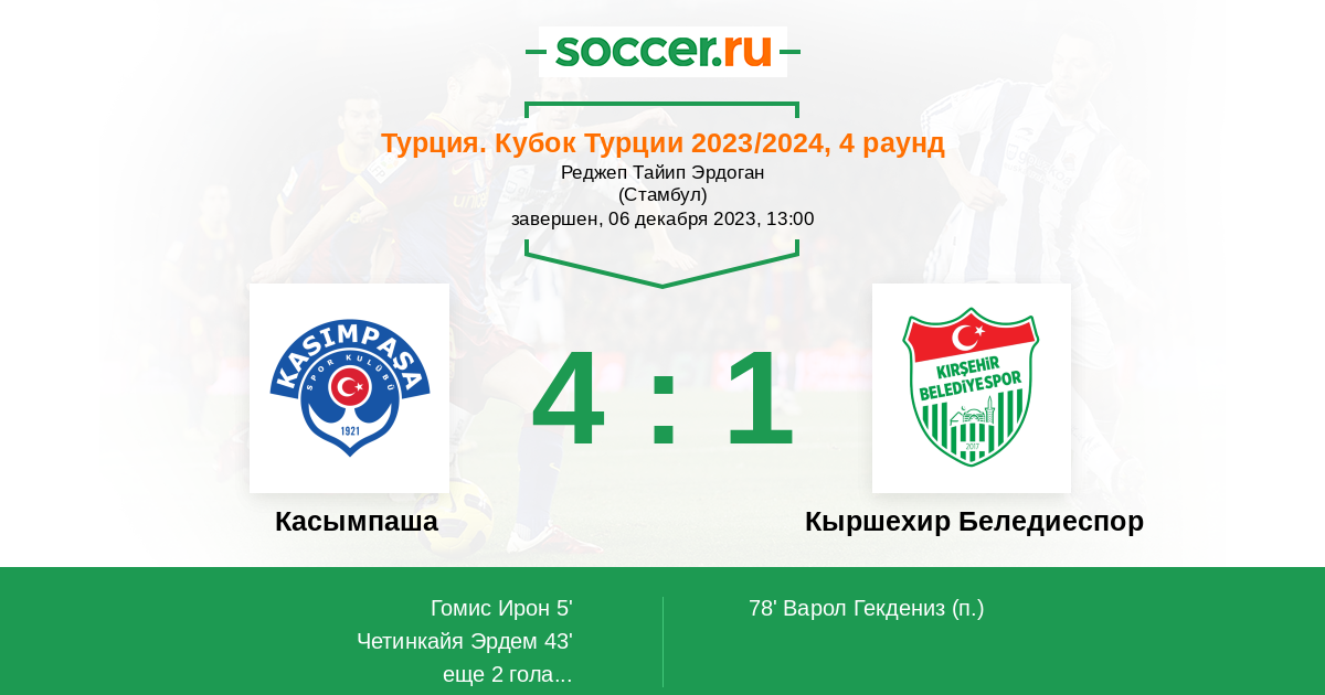 Протокол матча Касымпаша против Кыршехир Беледиеспор