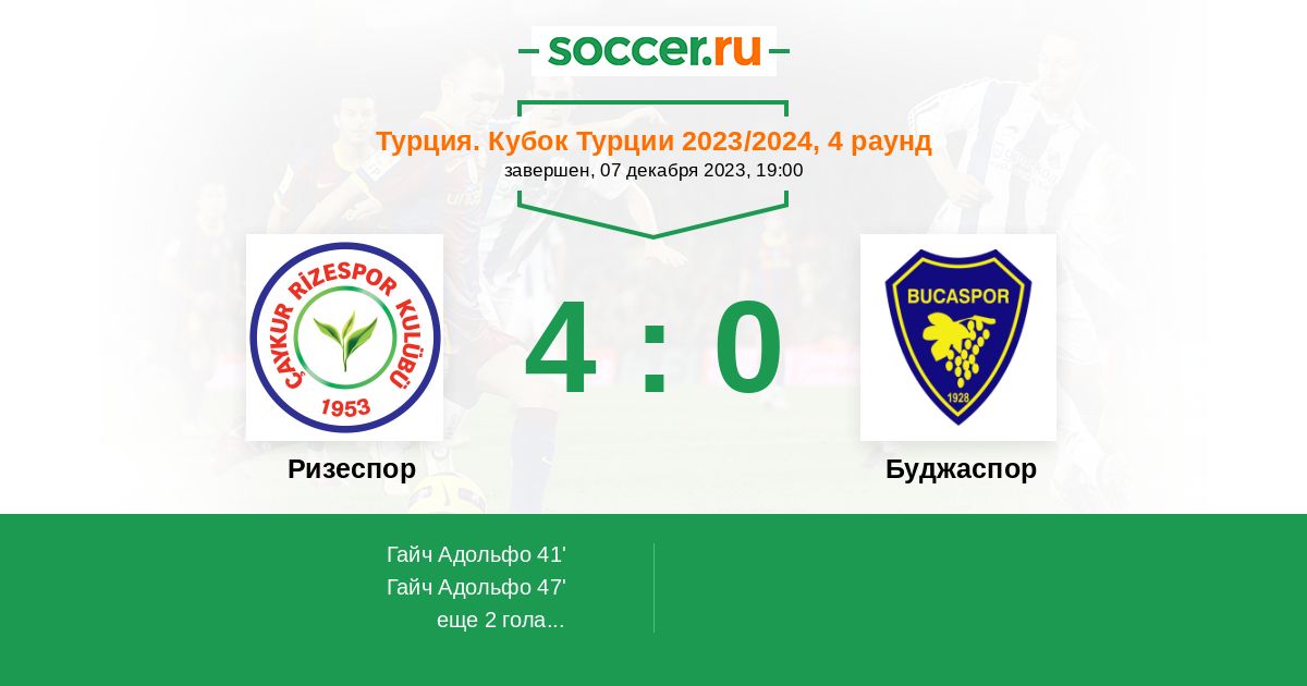 Протокол матча Ризеспор против Буджаспор