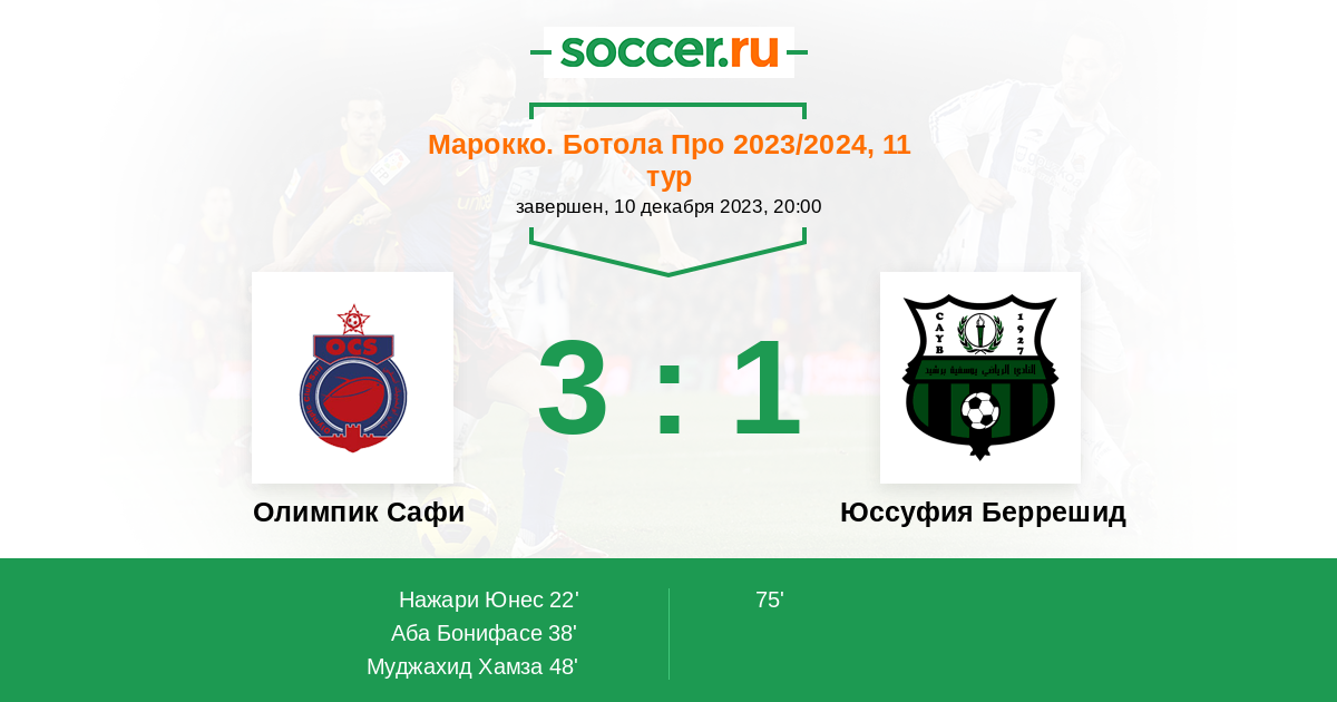 Протокол матча Олимпик Сафи против Юссуфия Беррешид