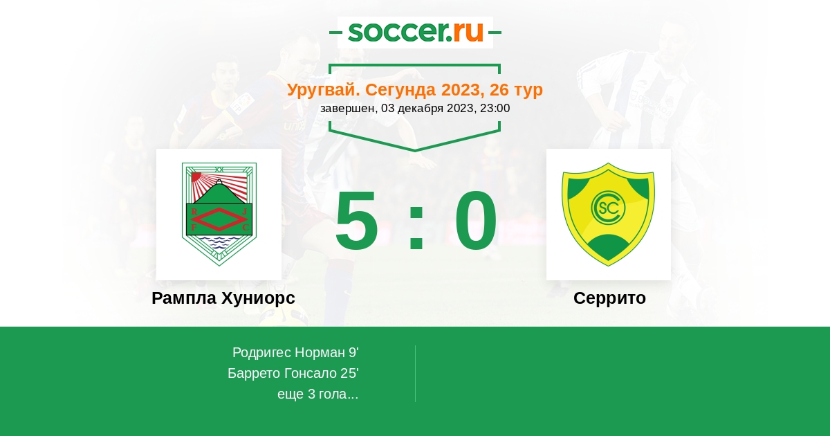 Протокол матча Рампла Хуниорс против Серрито