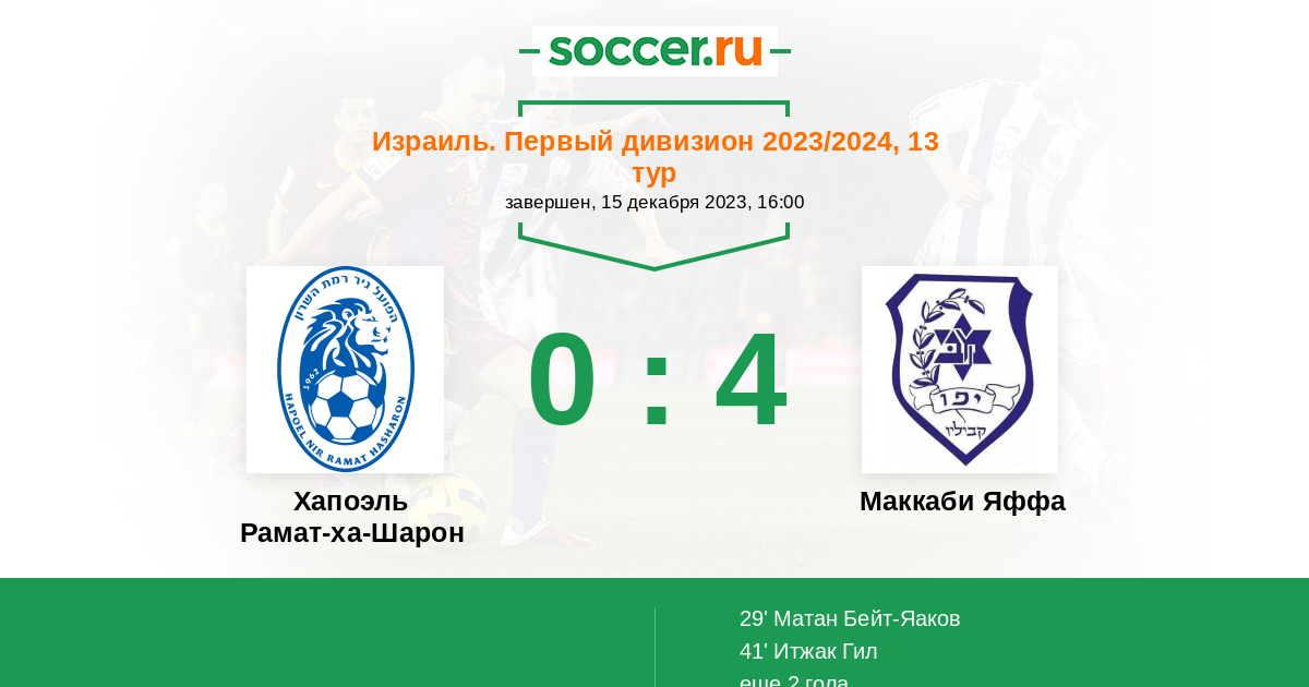 Протокол матча Хапоэль Рамат-ха-Шарон против Маккаби Яффа