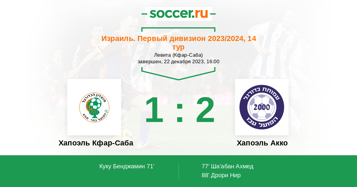 Протокол матча Хапоэль Кфар-Саба против Хапоэль Акко