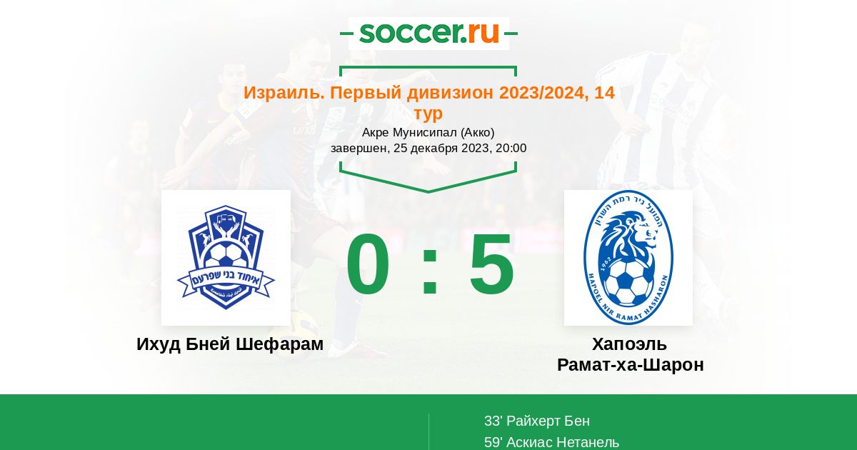 Протокол матча Ихуд Бней Шефарам против Хапоэль Рамат-ха-Шарон