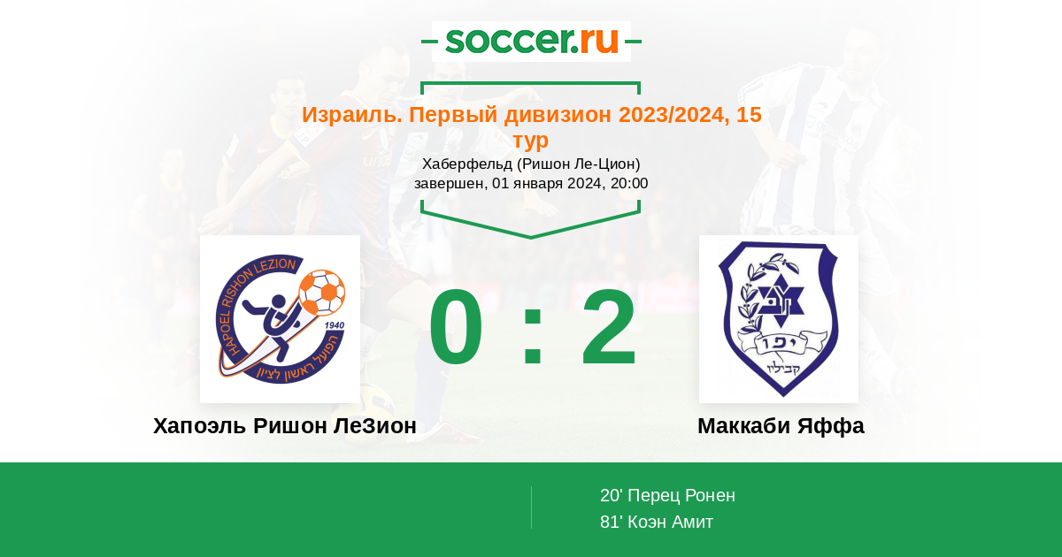 Протокол матча Хапоэль Ришон ЛеЗион против Маккаби Яффа