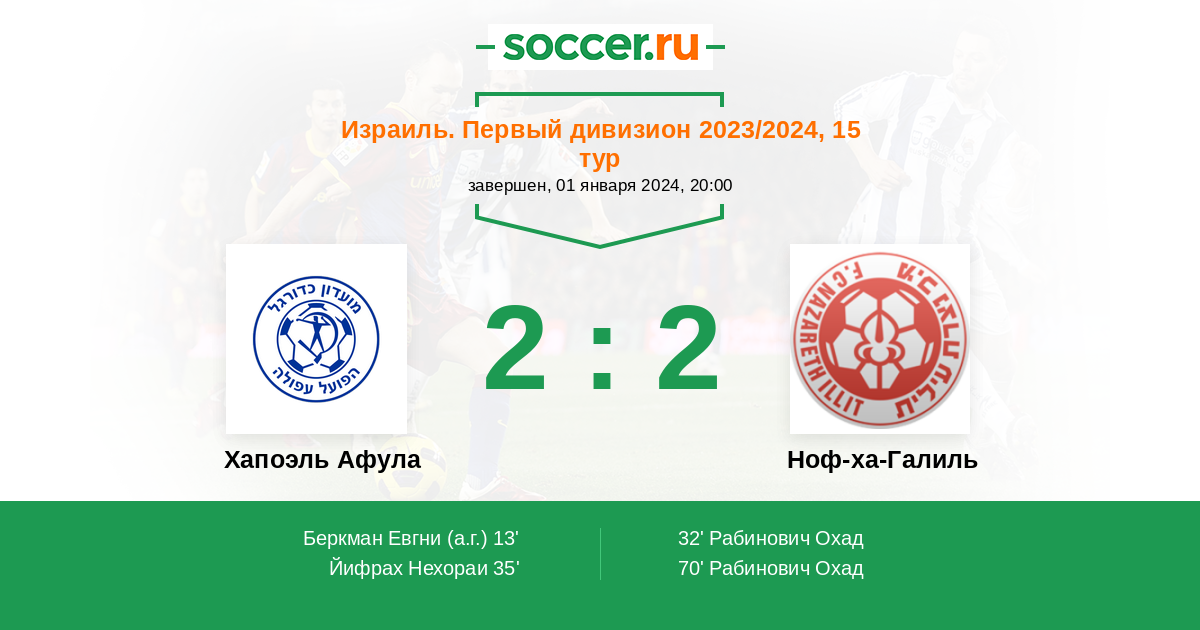 Протокол матча Хапоэль Афула против Ноф-ха-Галиль