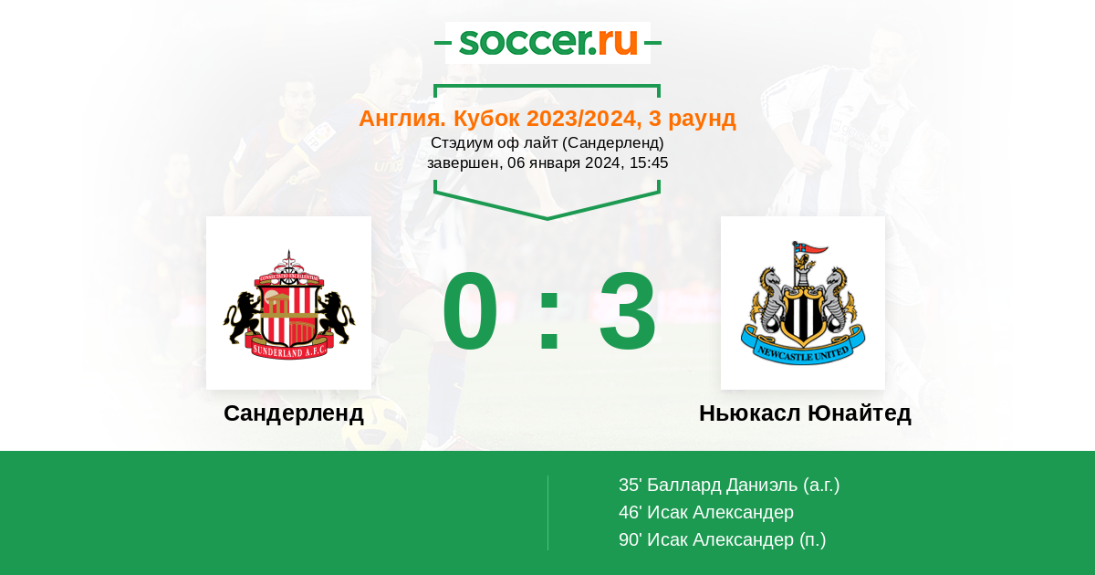 Протокол матча Сандерленд против Ньюкасл Юнайтед