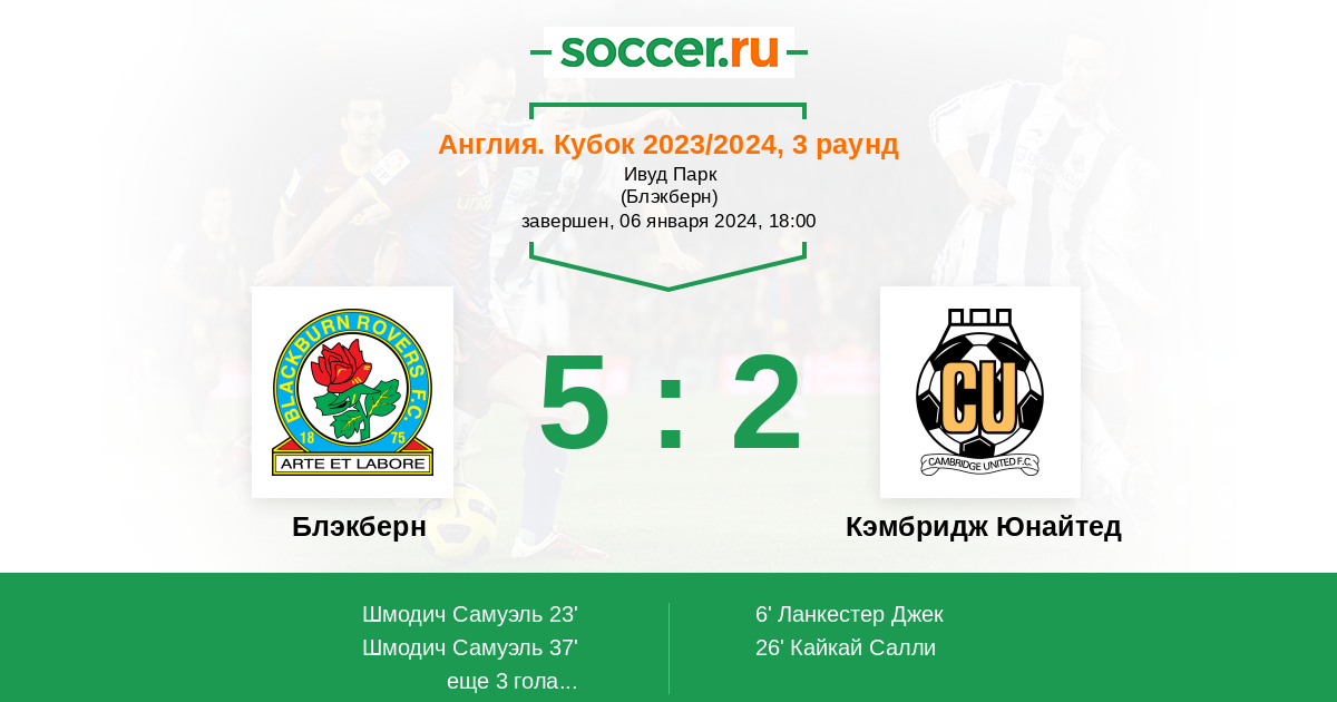 Протокол матча Блэкберн против Кэмбридж Юнайтед