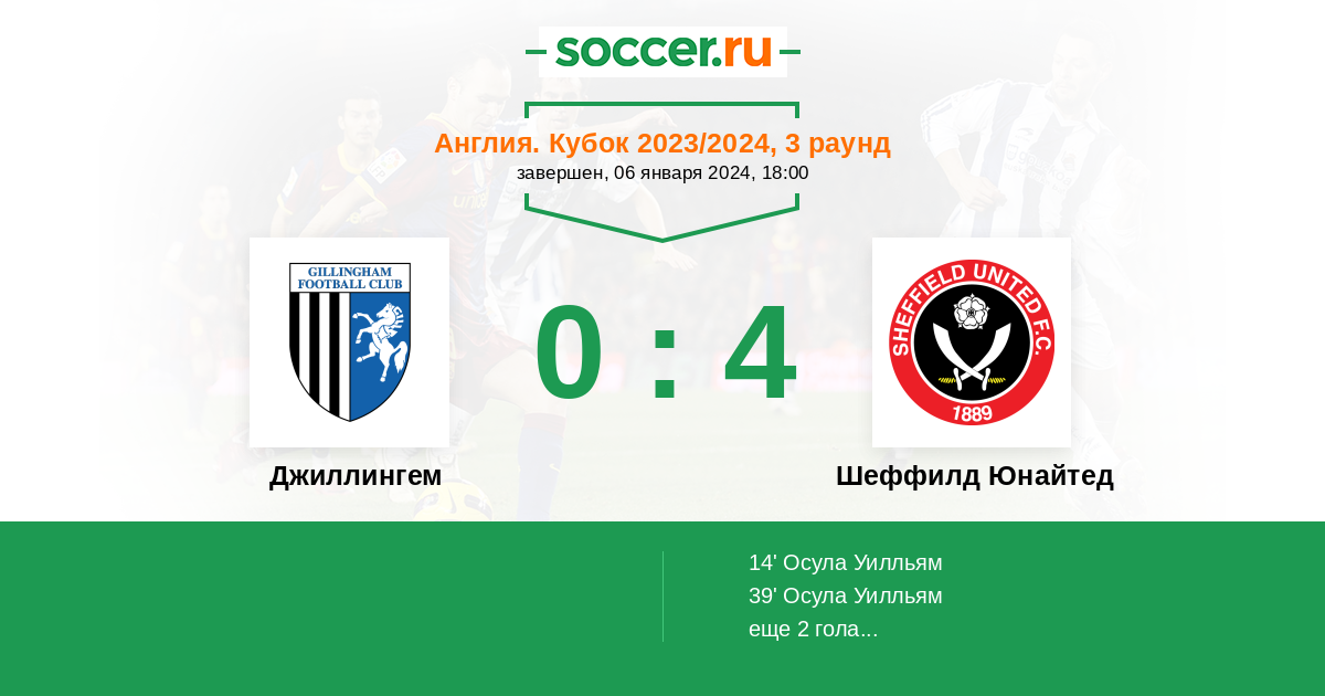 Протокол матча Джиллингем против Шеффилд Юнайтед