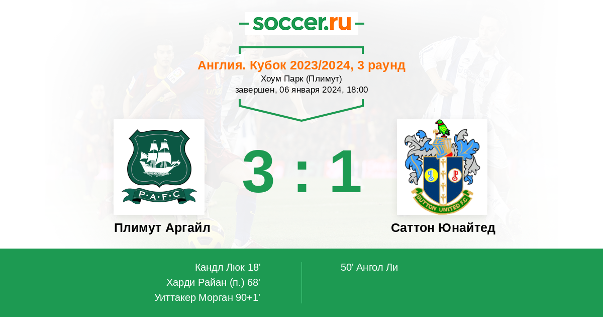 Протокол матча Плимут Аргайл против Саттон Юнайтед