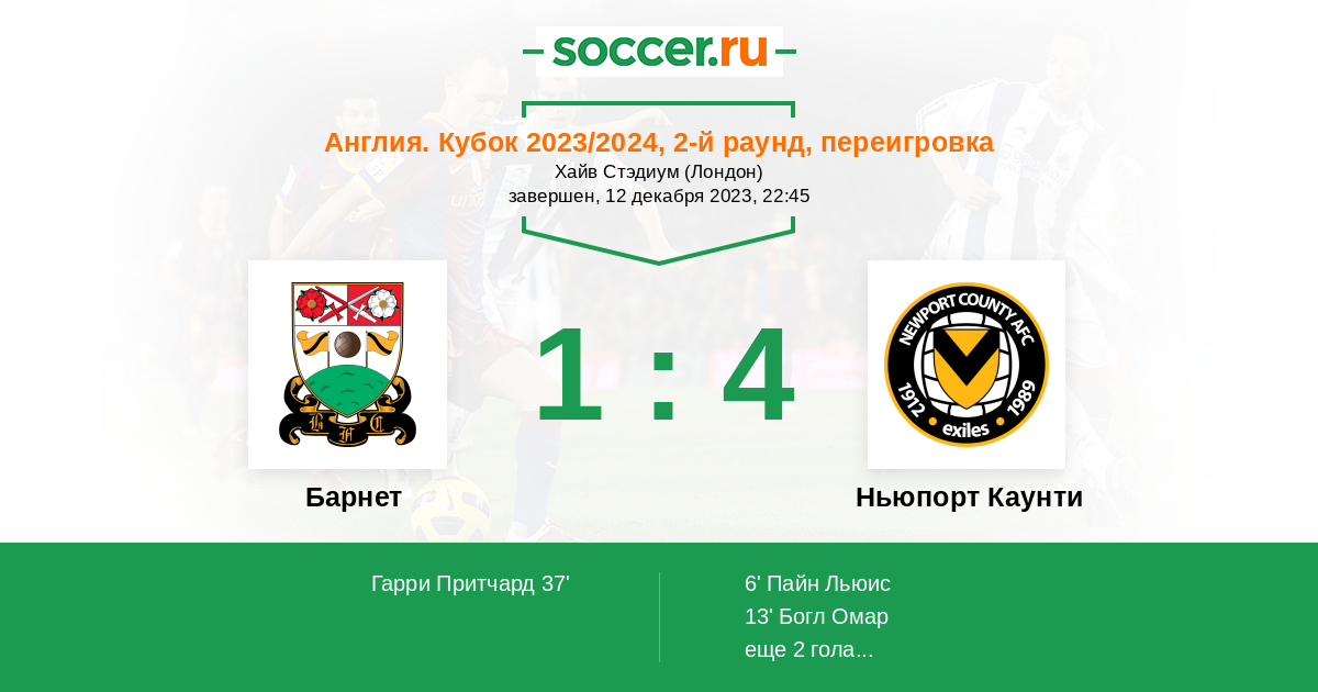 Протокол матча Барнет против Ньюпорт Каунти