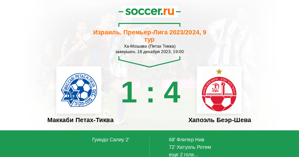 Протокол матча Маккаби Петах-Тиква против Хапоэль Беэр-Шева