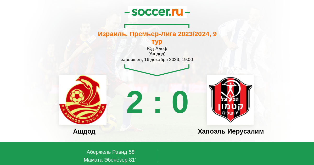 Протокол матча Ашдод против Хапоэль Иерусалим