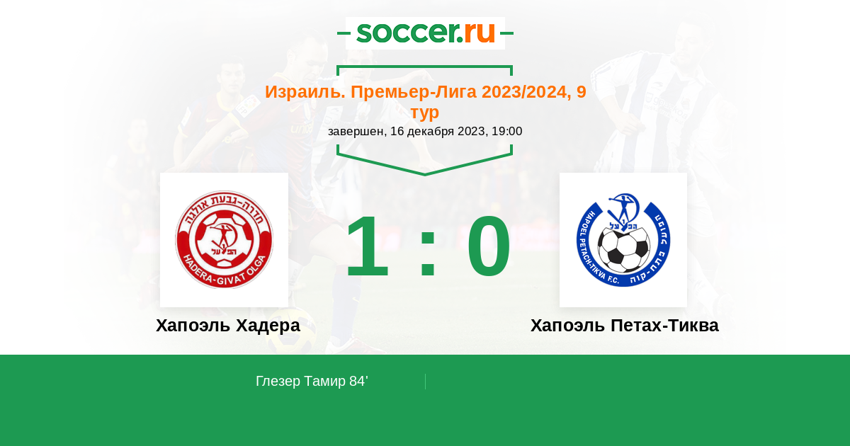 Протокол матча Хапоэль Хадера против Хапоэль Петах-Тиква