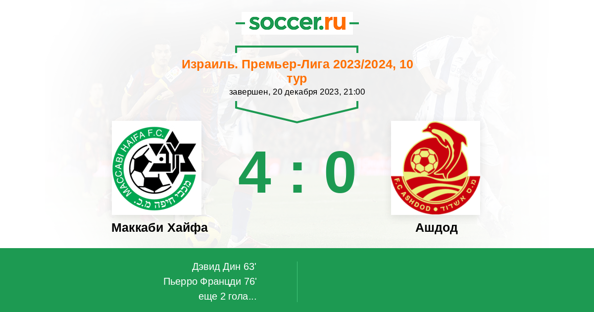 Протокол матча Маккаби Хайфа против Ашдод
