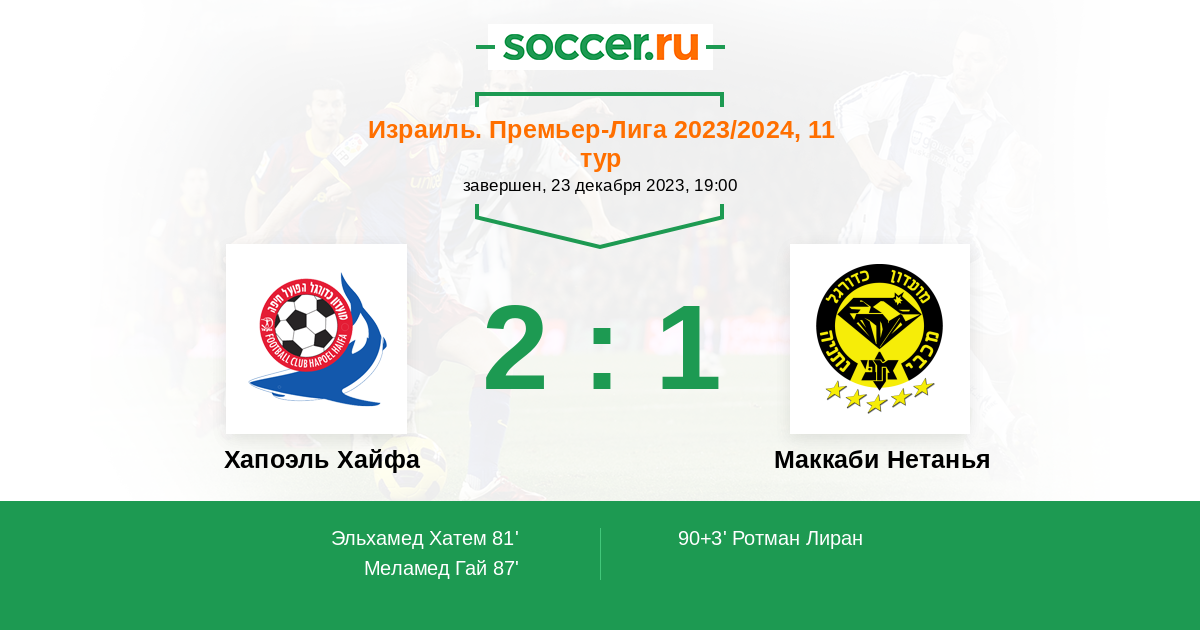 Протокол матча Хапоэль Хайфа против Маккаби Нетанья