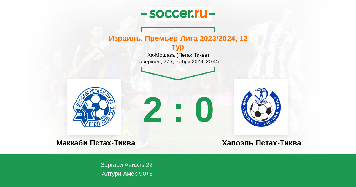 Протокол матча Маккаби Петах-Тиква против Хапоэль Петах-Тиква