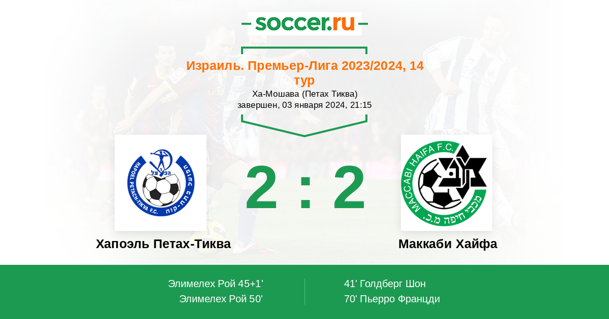 Протокол матча Хапоэль Петах-Тиква против Маккаби Хайфа