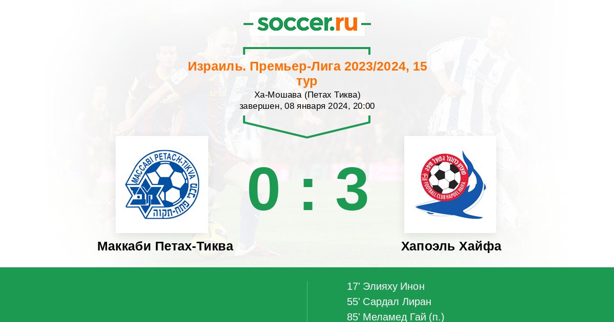 Протокол матча Маккаби Петах-Тиква против Хапоэль Хайфа