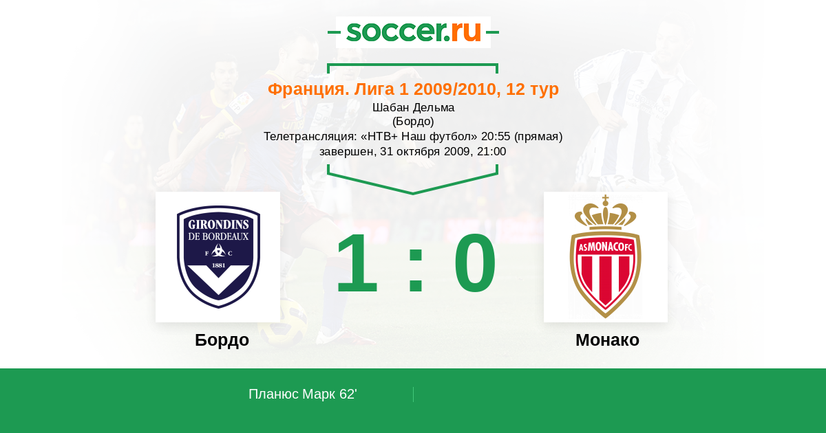 Протокол матча Бордо против Монако