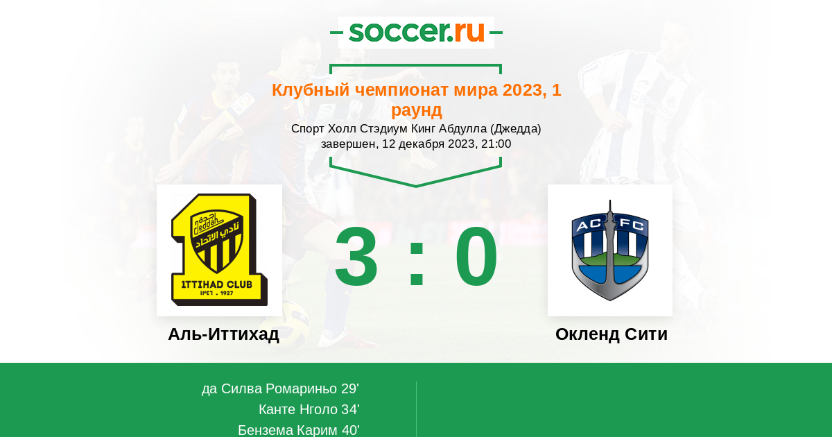 40' (3:0) Бензема Карим (9) (Шанкити Муханнад (13))