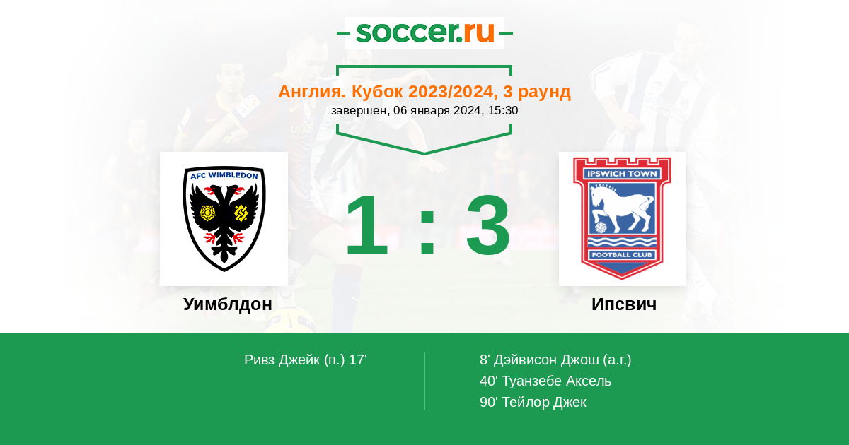 Протокол матча Уимблдон против Ипсвич