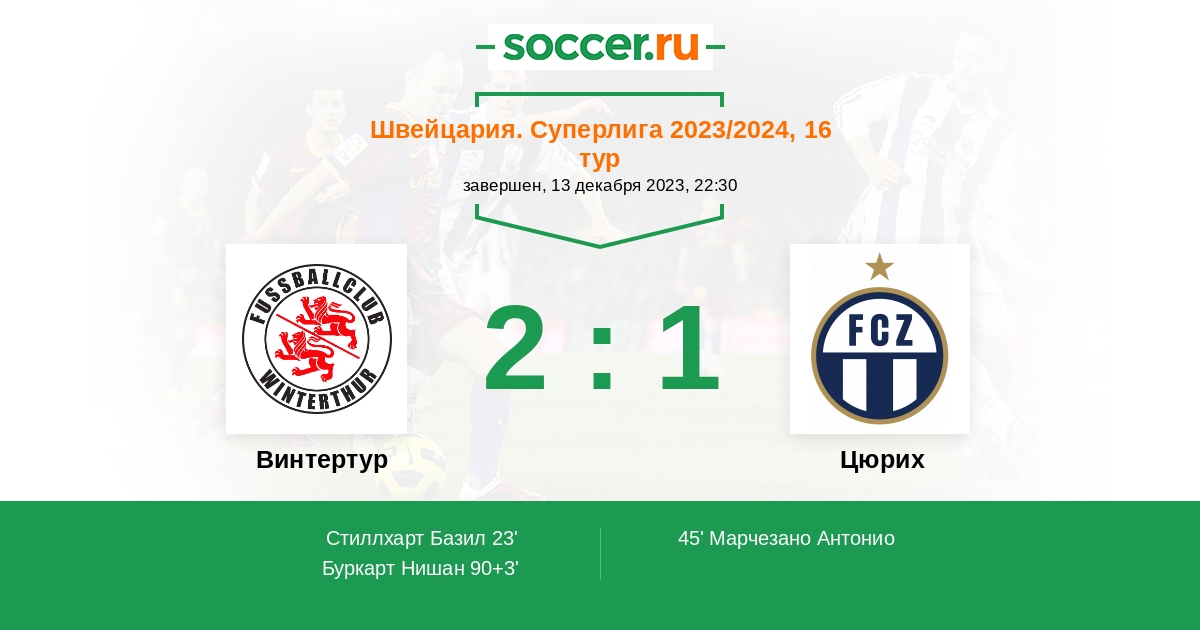 Протокол матча Винтертур против Цюрих