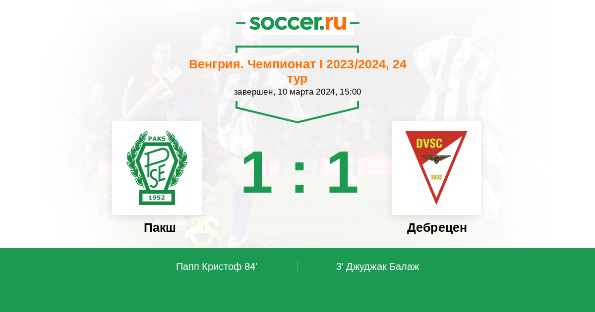 Протокол матча Пакш против Дебрецен
