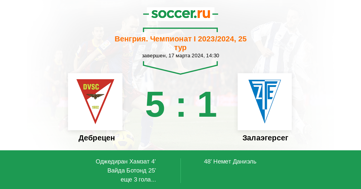 Протокол матча Дебрецен против Залаэгерсег