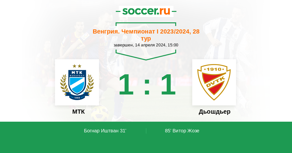 Протокол матча МТК против Дьошдьер