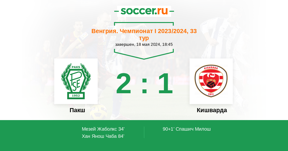 Протокол матча Пакш против Кишварда