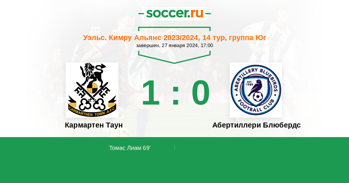 Протокол матча Кармартен Таун против Абертиллери Блюбердс
