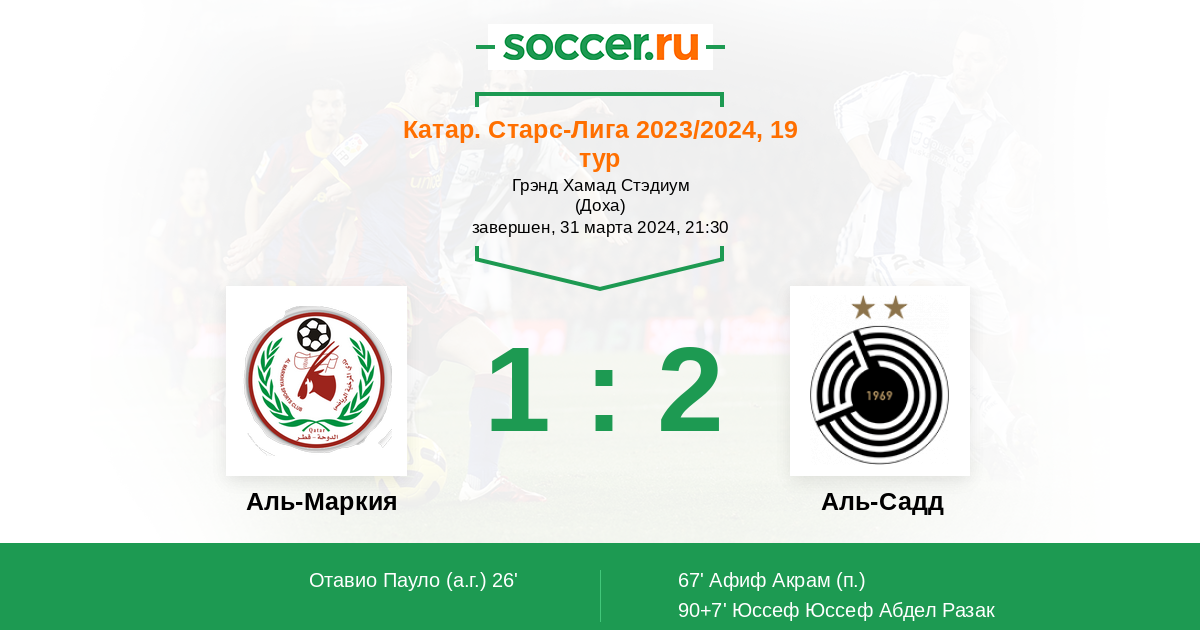 Протокол матча Аль-Маркия против Аль-Садд