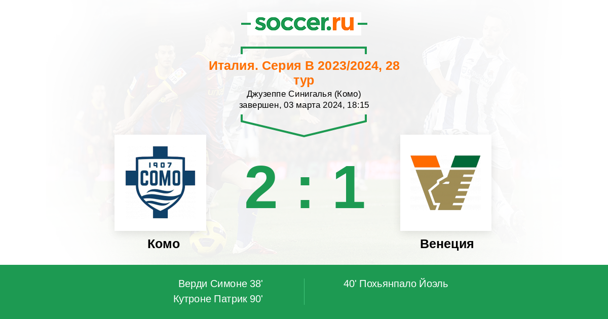 Протокол матча Комо против Венеция
