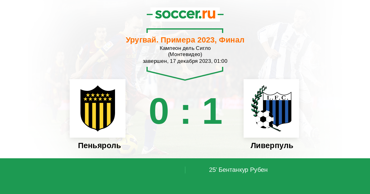 Протокол матча Пеньяроль против Ливерпуль