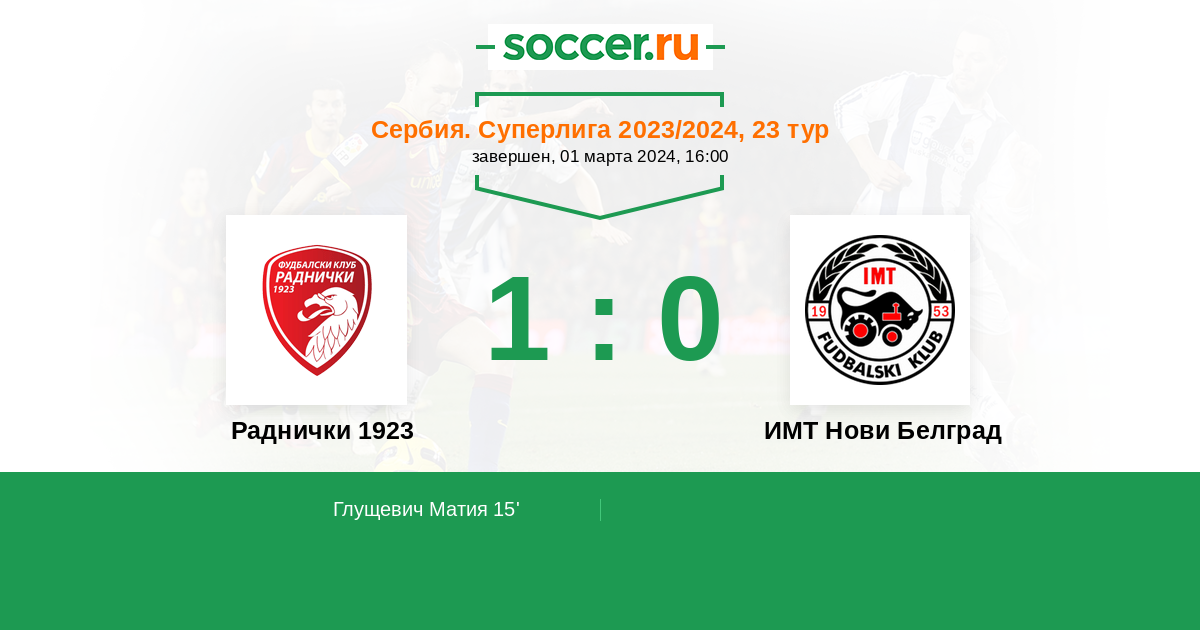 Протокол матча Раднички 1923 против ИМТ Нови Белград