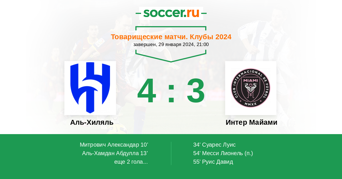 Протокол матча Аль-Хиляль против Интер Майами