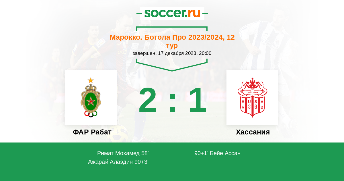 Протокол матча ФАР Рабат против Хассания