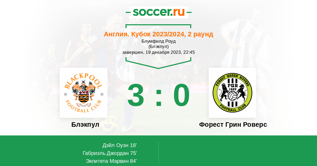 Протокол матча Блэкпул против Форест Грин Роверс