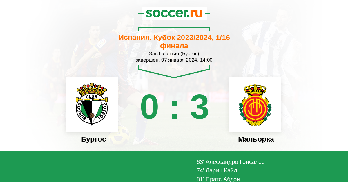 В предстоящем матче 1/16 финала Кубка Испании между командами Бургос и Реал Мальорка, фаворитом на победу является команда гостей Реал Мальорка, несмотря на то, что матч пройдёт на Эль Плантио в Бургосе.