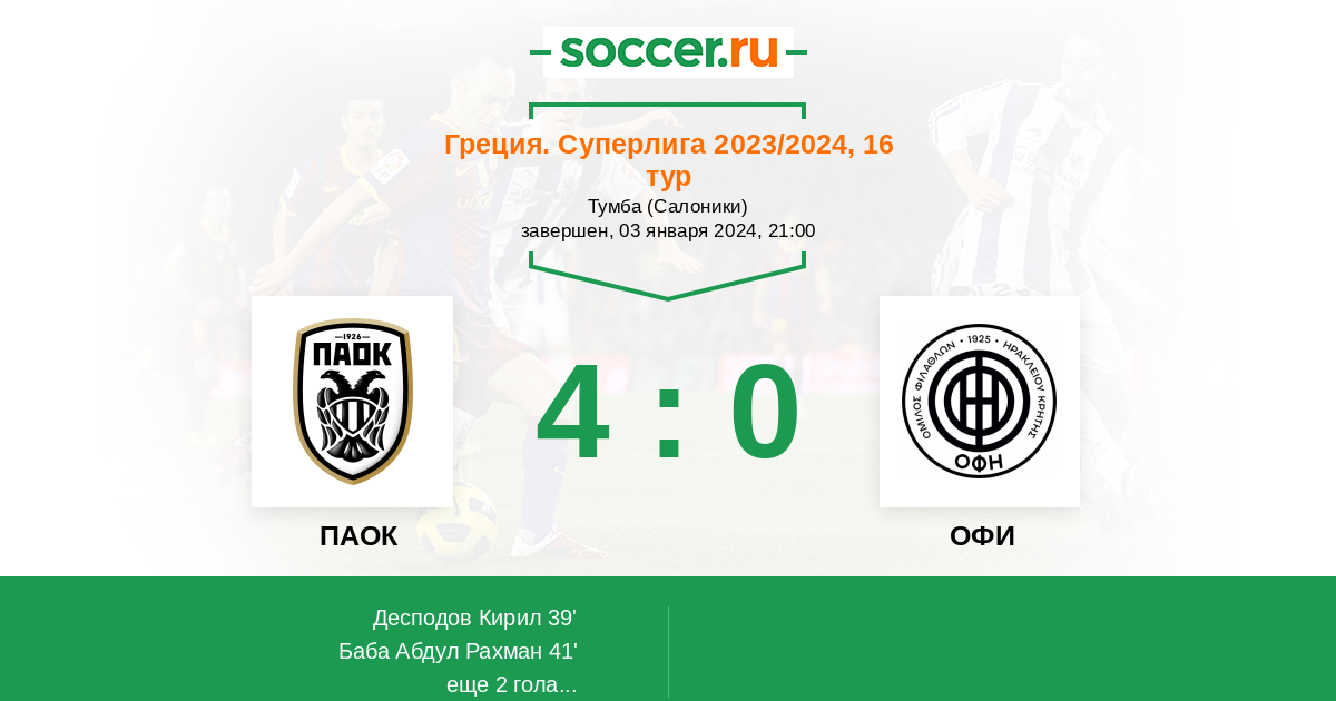 Протокол матча ПАОК против ОФИ
