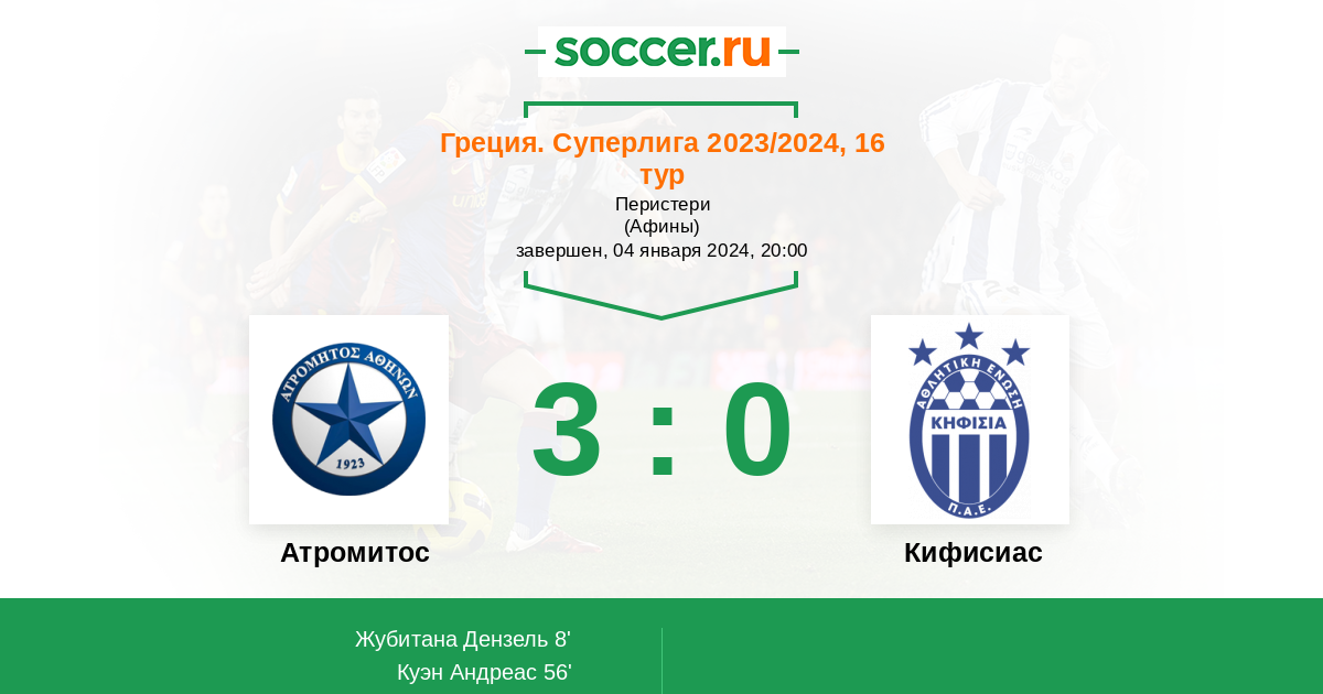 Протокол матча Атромитос против Кифисиас