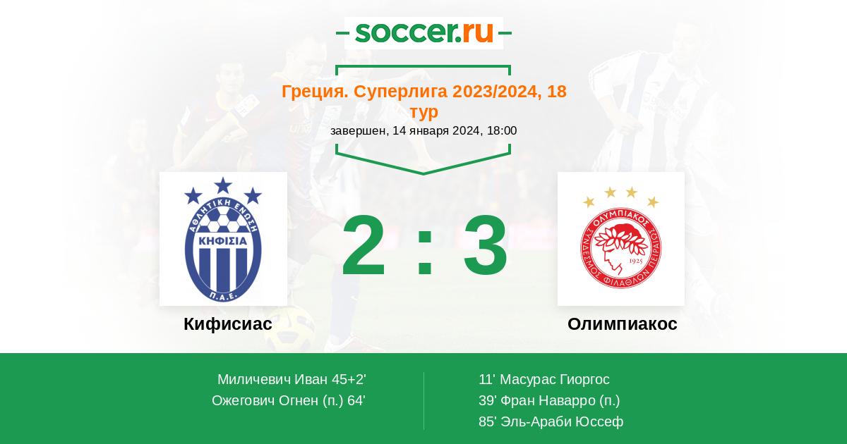 Протокол матча Кифисиас против Олимпиакос